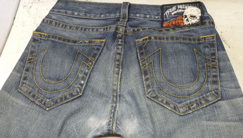 Having worked on True Religion jeans since they became popular in the UK around 8 years ago i have found some unique techniques of altering and repairing this specific brand of denim jeans. The signature thick cotton stitching has always been a bit of a pain for tailors to retain whilst working on them and not being able to buy the sewing machine True Religion use for this unique detail, tailors have been nervous to alter this denim jean brand.